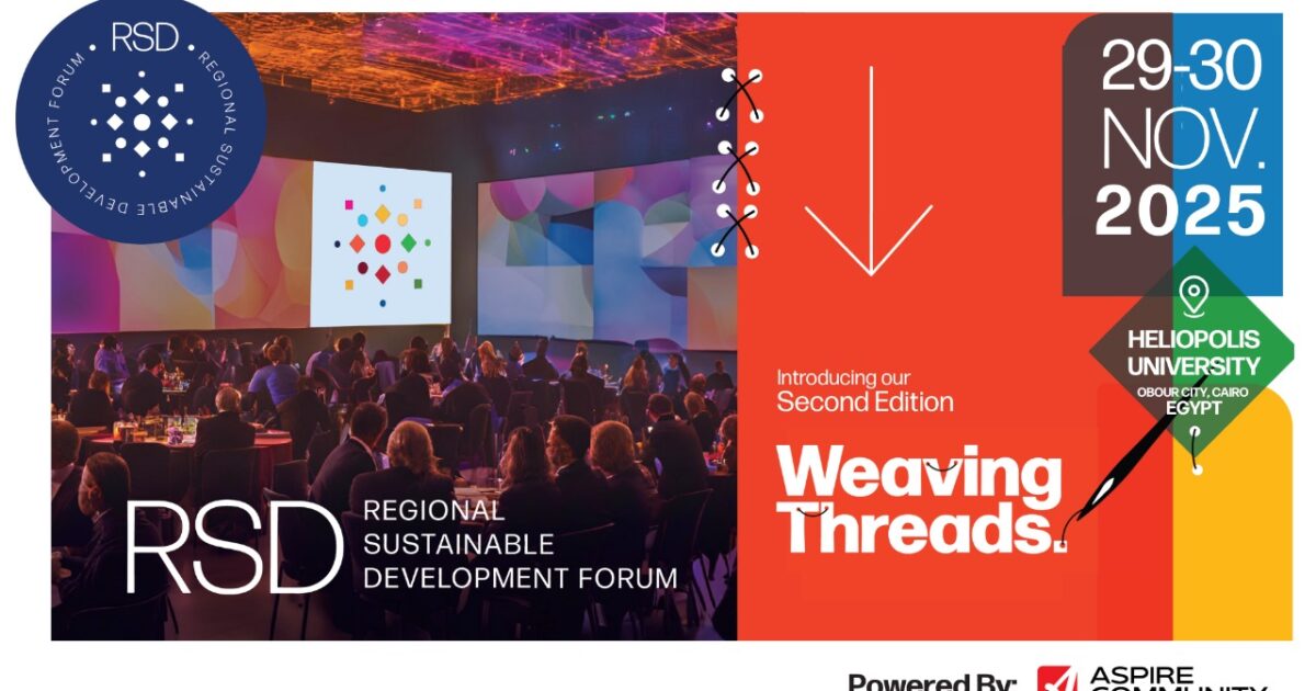 أختتمت اليوم فعاليات النسخة الثانية من “المنتدى الإقليمي للتنمية المستدامة Regional Sustainable Development Forum – RSD”، برعاية وزارة الشباب والرياضة، ووزارة البيئة، والذي نظمته (أسباير – Aspire) للتنمية المجتمعية، والتابعة لـ «أسباير للاستشارات الدولية» في جامعة هليوبوليس للتنمية المستدامة، وذلك بمشاركة نخبة من المسؤولين الحكوميين وصناع القرار والخبراء وممثلي المؤسسات المحلية والدولية المعنية بالتنمية المستدامة.